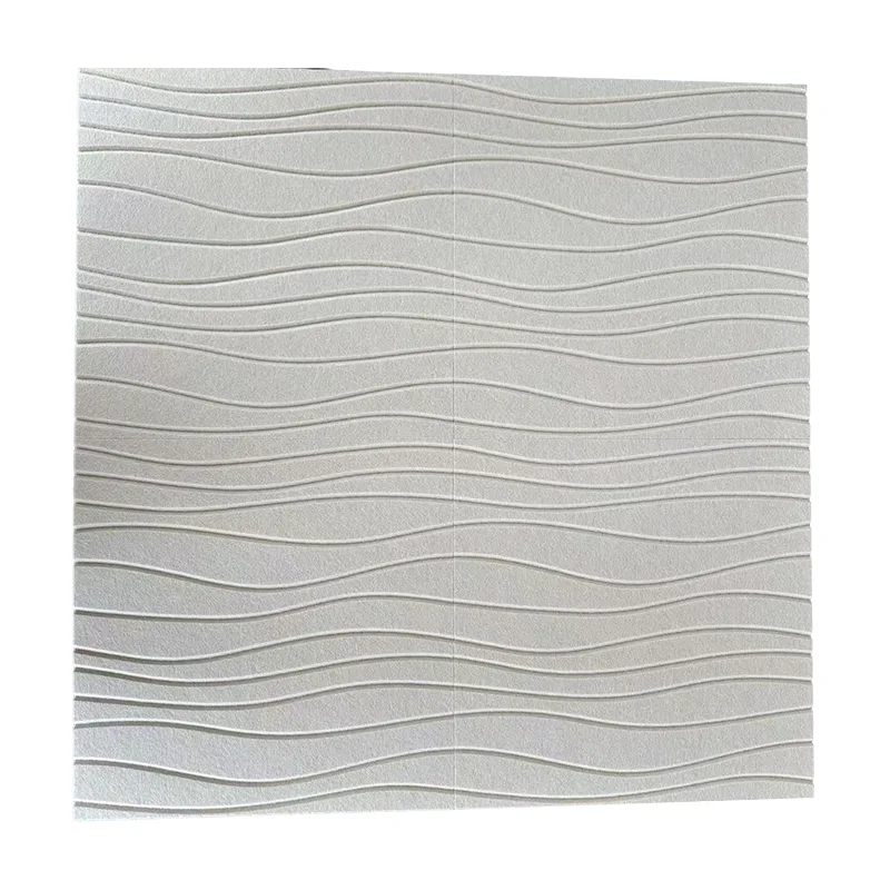 2. Hocheffiziente Schallabsorption: Der Kernprozess des Nadelstanzens ist unser technisches Geheimnis. Die durch Tausende von Nadelstichen gebildete Mikroporenmatrix ermöglicht es der Beige Wave PET-Filz-Akustikplatte, bei bestimmten Frequenzen (mit Lufthohlraum) einen Schallabsorptionskoeffizienten von über 0,8 zu erreichen. Durch die Verwendung kann die Nachhallzeit in Innenräumen erheblich verkürzt werden, wodurch die Sprache klarer, die Musik reiner und die Umgebung leiser wird. 3. Umweltfreundlich: Unsere Beige Wave PET-Filz-Akustikplatte enthält über 50 % recycelte Polyesterfasern und das Produkt selbst ist am Ende seines Lebenszyklus recycelbar.